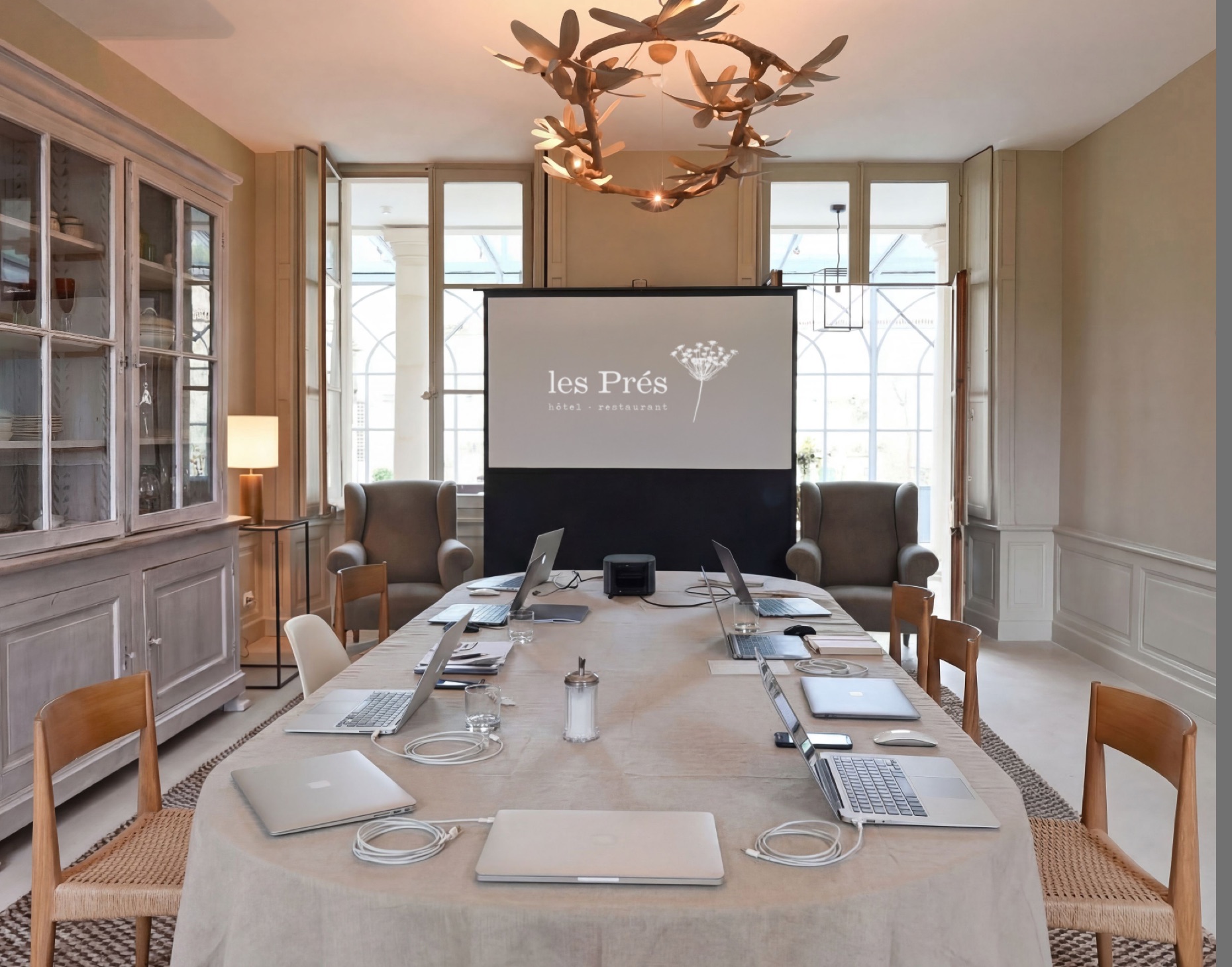Loin de l'agitation, Les Prés offrent le luxe du temps et de l'espace. Pour vos comités de direction ou séminaires de cohésion, nous vous proposons bien plus qu'une salle de réunion : une véritable maison de famille avec un service de restauration, et 9 chambres agréables à la campagne.